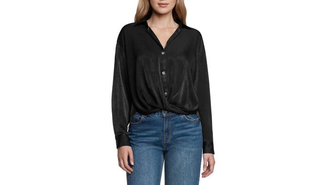 Made from a smooth satin fabric, this V-neck shirt is a classic that will never go out of style. A similar Express top retails for $74.