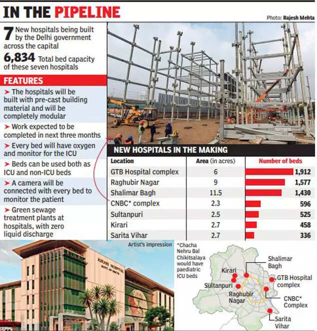 NEW DELHI: Over the next few months, seven new hospitals of Delhi government will be completed, ramping up the capital’s health infrastructure by nearly 7,000 beds.