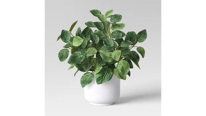 Target carries many faux plants for under $15, but we really love the mosaic leaf plant from Room Essentials. This hefty green plant comes in a small white pot and makes a great addition to desks, bookshelves and mantles.