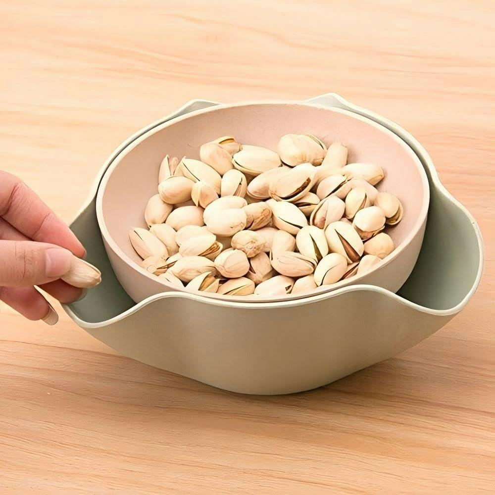 A 2-layer bowl to serve snacks & discard their pits, shells or pods