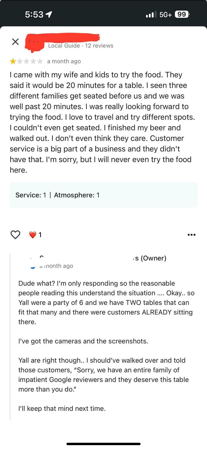 #23 Looking Where To Eat This Evening And Came Across This Useful 1 Star Review
