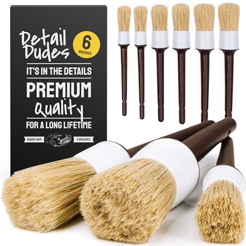 Detail Dudes Car Detailing Brush Ultra Soft Boars Hair Set of 6 Automotive Detail Brushes- Washing & Cleaning for Wheels, Interior Upholstery, Emblem, Air Vent- Vehicles & Auto Interior Detailing Kit