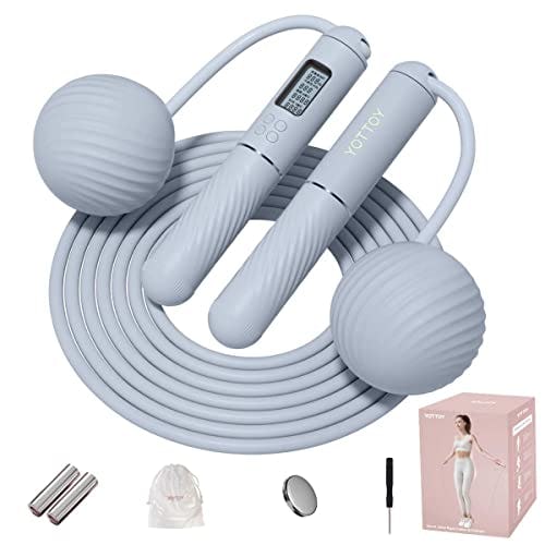YOTTOY Cordless Jump Rope with Counter - Ropeless Jump Rope 2 In 1 with Large Cordless Ball-Weighted for Women with LCD Display (Blue)