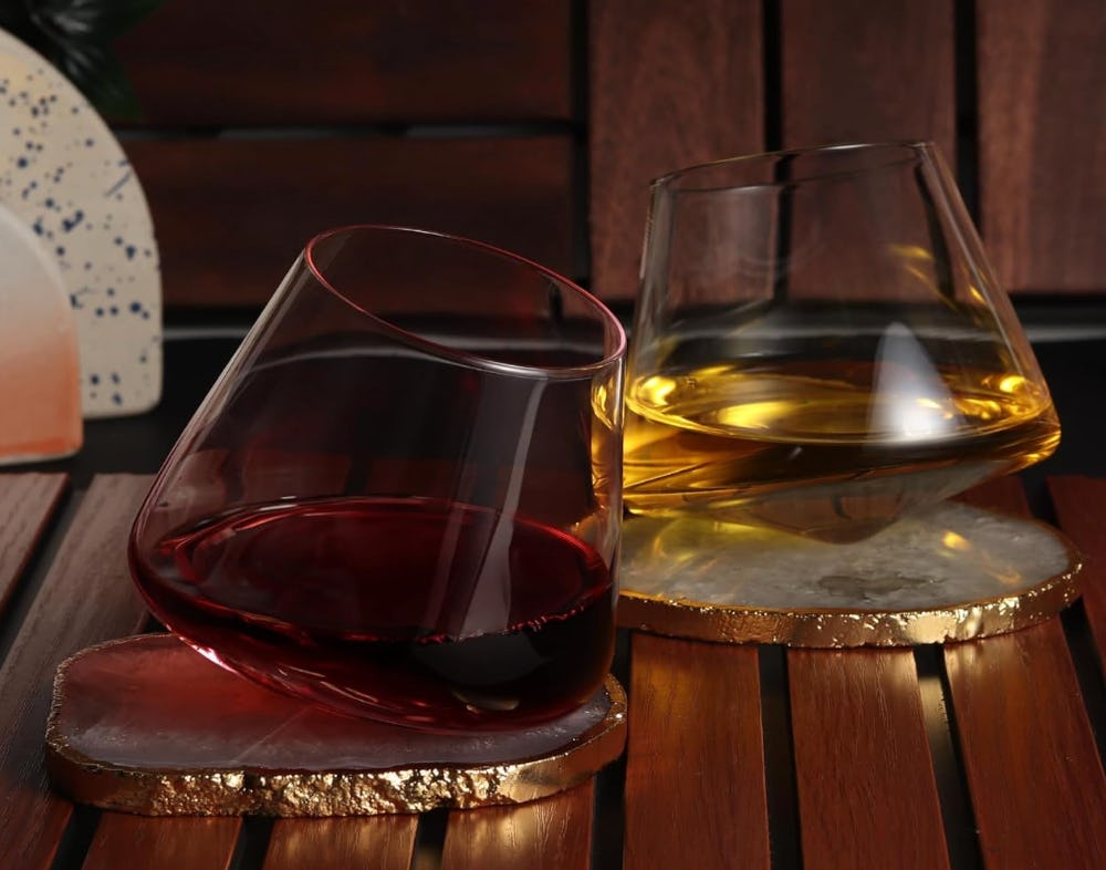 Mesmerizing tilted glasses that naturally aerate alcoholic beverages