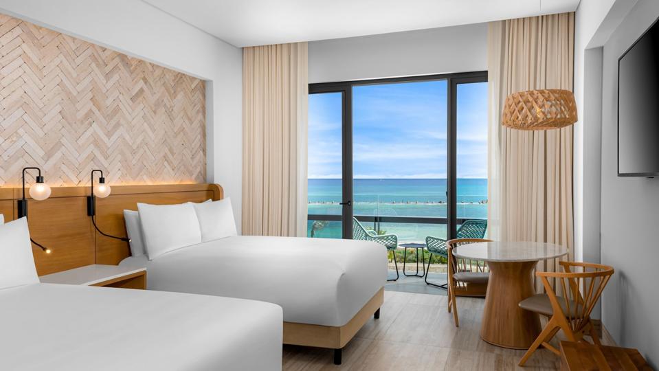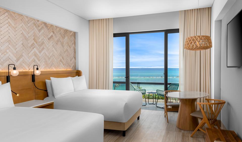 A guest room at Hilton's new all-inclusive resort in Tulum, Mexico. Hilton