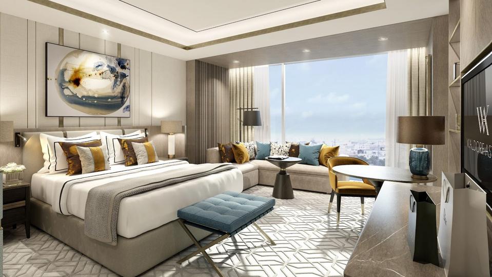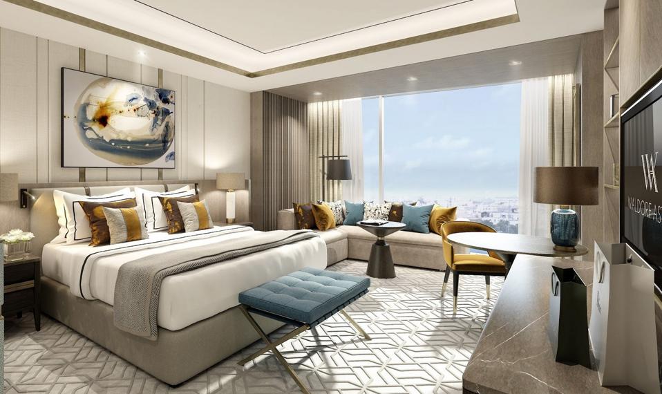 A guest room at the Waldorf Astoria Kuwait Waldorf Astoria