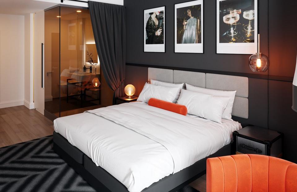A guest room at the new English Hotel in Las Vegas Tribute Portfolio