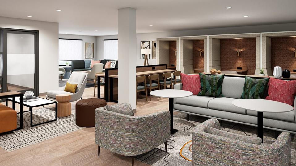 Co-working space at the first Atwell Suites property, which opened this month in Miami Beach. IHG Hotels & Resorts