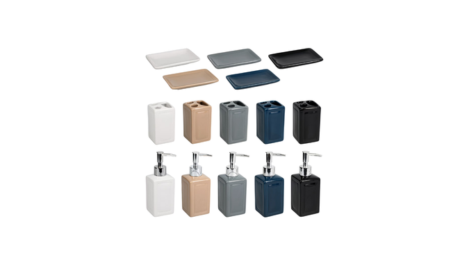 Bathroom accessories can make a big difference without a full upgrade. Items like solid color bathroom accessories, assorted colors, 3-ct. come with coordinated pieces that reduce visual clutter and make the space feel more put-together. Matching accessories in uniform materials creates a cleaner, hotel-style appearance that feels more intentional than mismatched plastic items.