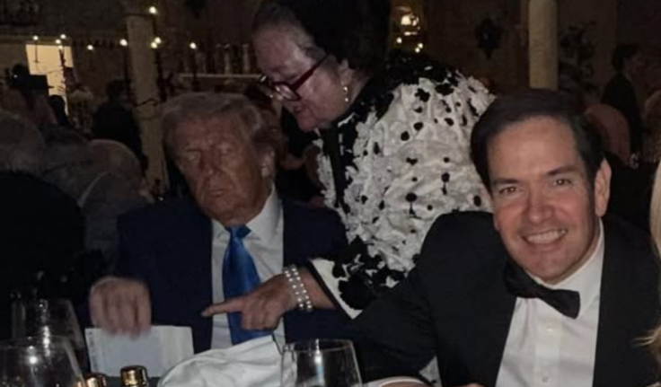 A widely circulated photo shows Trump seated beside Senator Marco Rubio, surrounded by guests including Judge Jeanine Pirro in feathered headpieces and tuxedos. Gold accents and candlelit tables suggest that the event had a 1920s supper club atmosphere.