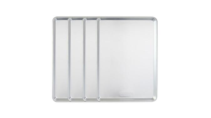 Consider this your sign to toss out worn out, grease-stained cooking sheets and invest in aluminum sheets from Nordic Ware. Each set of four baking sheets are roomy enough to fit everything from a dozen cookies to your favorite proteins and mixed vegetables.