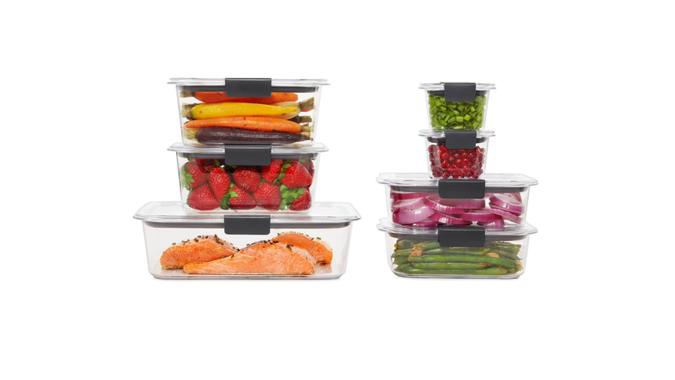 Meal prep in style using Rubbermaid Brilliance StainShield food storage containers. The 14-piece set of containers with lids come in varying sizes to securely fit everything from fruit to fish while remaining odor-resistant. These containers can even be safely microwaved thanks to the built-in vents designed to reduce splatter.