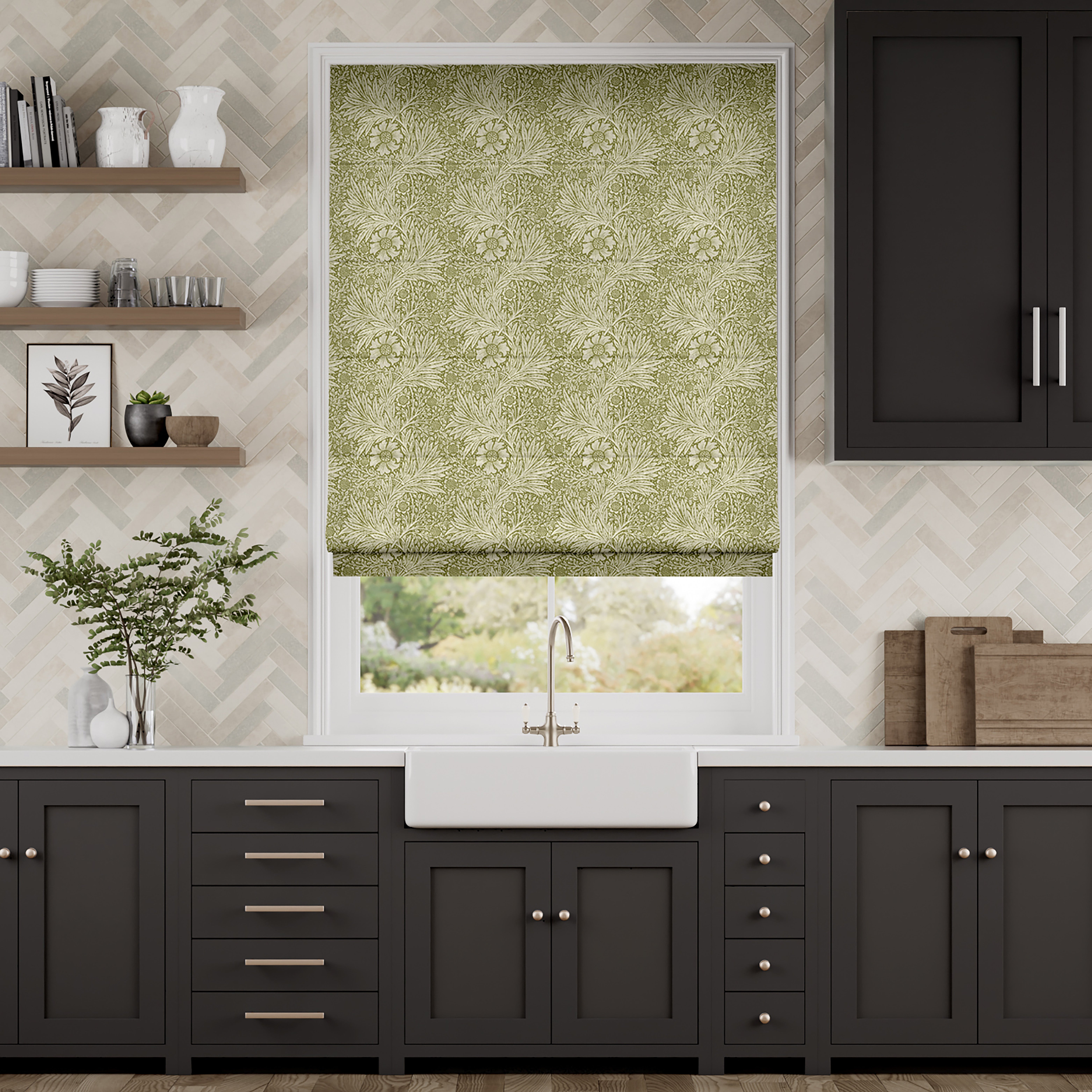 2. William Morris Marigold Moss Roman Blind, from £22.46, Blinds2go