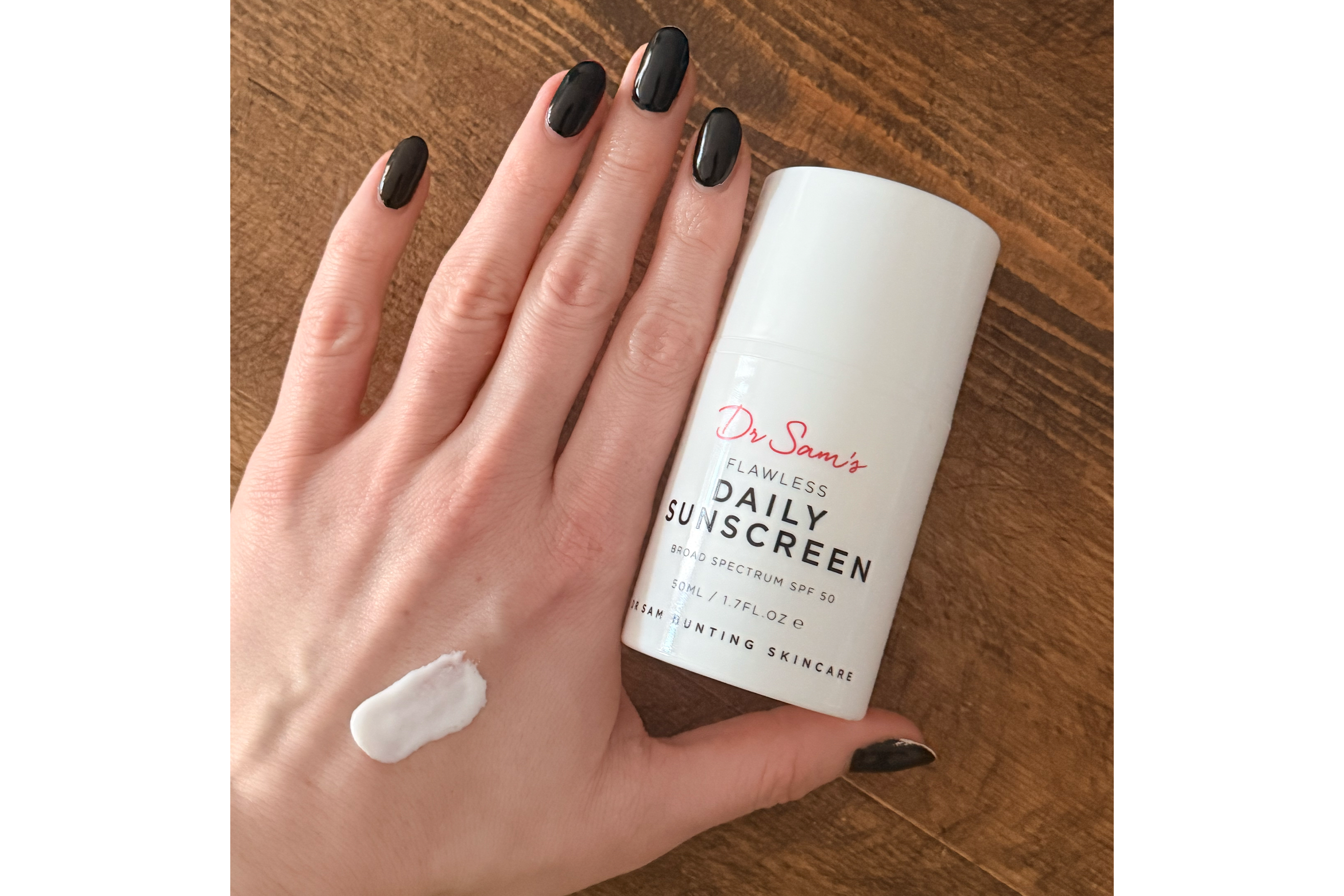 Swatching Dr Sam’s flawless daily sunscreen SPF50 (Louise Whitbread/The Independent)