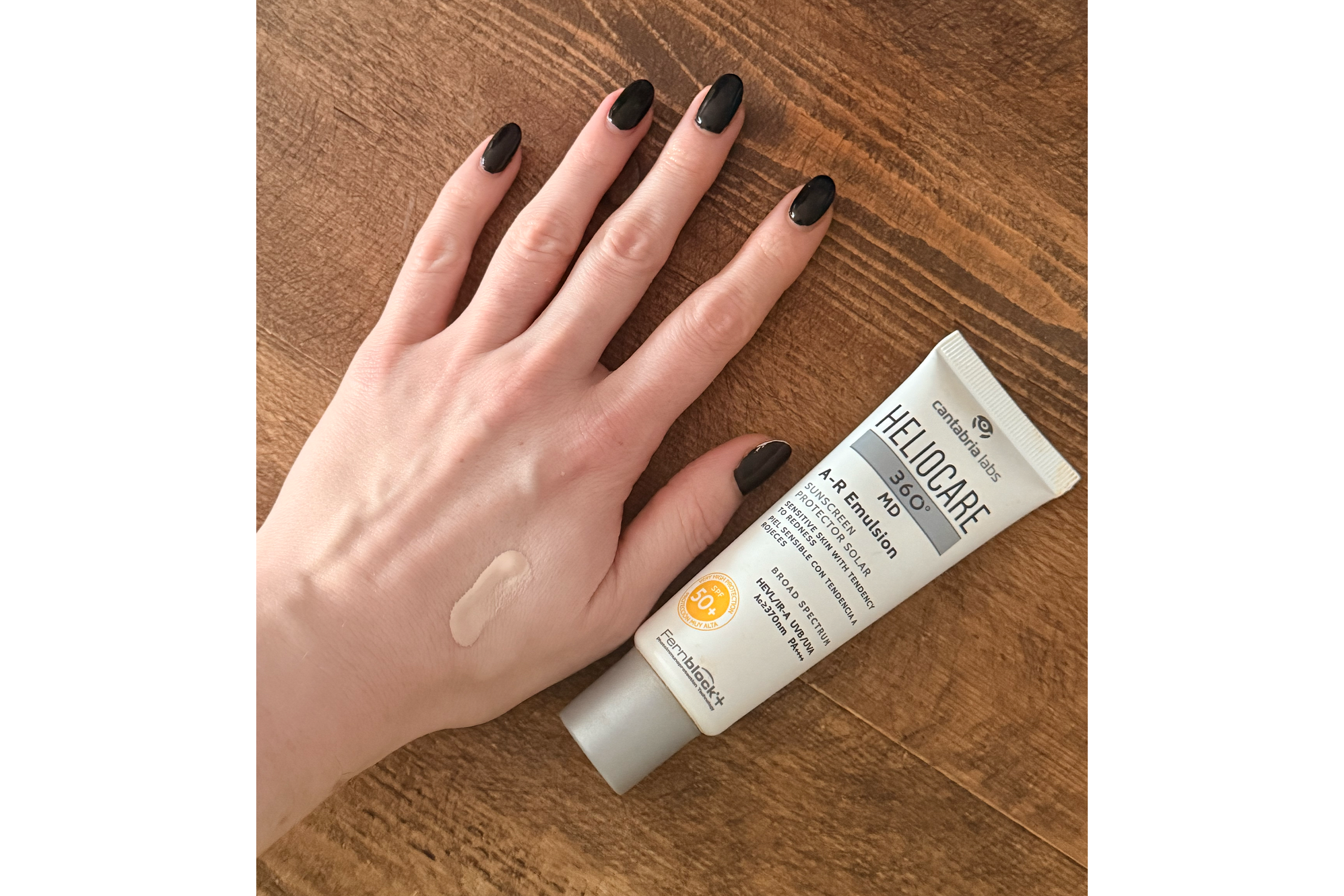 Swatching the Heliocare 360° A-R emulsion SPF50+ (Louise Whitbread/The Independent)