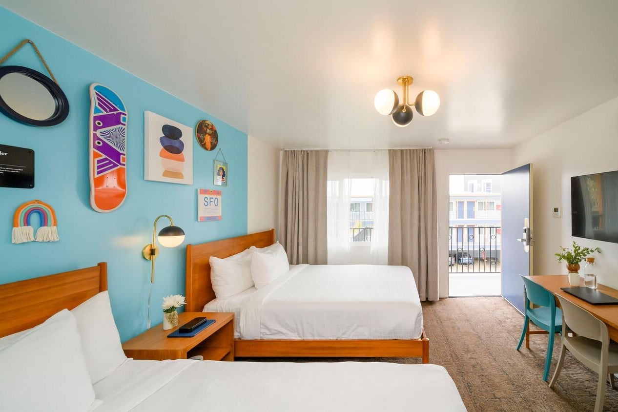 Beck’s Motor Lodge is a time capsule in the best possible way, a mid-century roadside gem parked right in the heart of the Castro. Don’t let the “motor lodge” label fool you: the rooms are fresh, functional, and quietly stylish, with retro touches that nod to its 1950s roots without leaning too hard on the theme. There’s a sun deck for lazy mornings, free parking (a rarity in San Francisco), and you’re quite literally steps from iconic queer bars, drag brunches, and rainbow crossings. It’s casual, clean, and confidently low-key, the kind of place that doesn’t try to impress, but still manages to charm.
