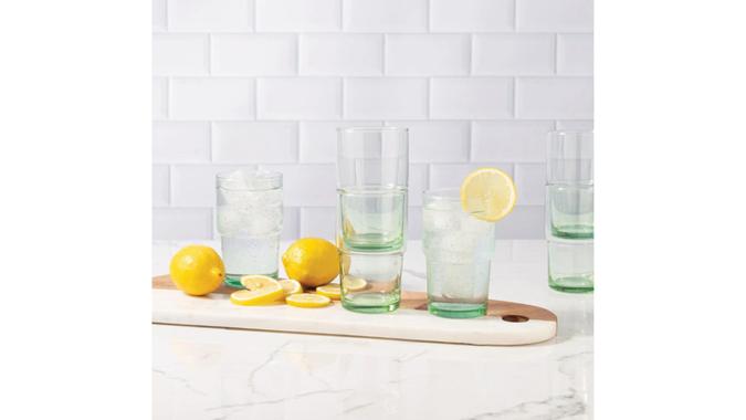 Fill up your cabinets with a seasonally chic set of clear green glassware.