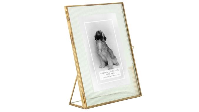 Home Decor Collection Brass-Trimmed Fluted Glass Picture Frame