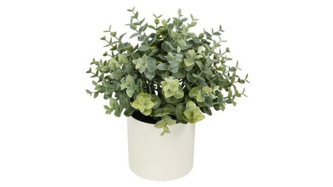 Add a charming touch of green to shelves, bathroom countertops and mantles with an artificial eucalyptus plant. This inexpensive bestseller comes ready to display inside an aesthetically pleasing cream pot.