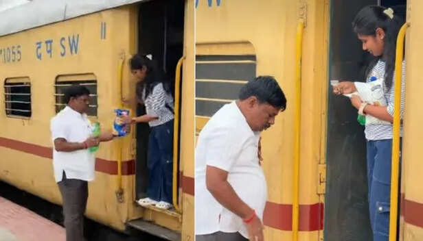 The text on the video, shared by the daughter nethrashivaji_67, reads, “No matter how far the train goes, a father’s love always runs faster.”