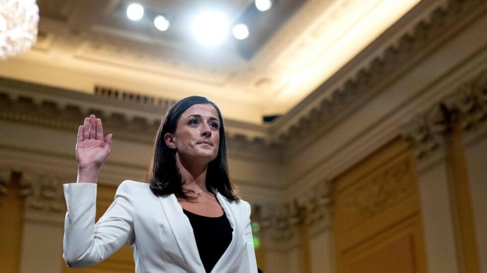 Hutchinson, a top aide to Trump’s White House Chief of Staff Mark Meadows, was the first person under oath to paint a fill-in-the numbers landscape of an angry president’s movements on Jan. 6, 2021, the day the nation’s Capitol was attacked by a vicious mob of loyal Trump “patriots” and armed loud boys.