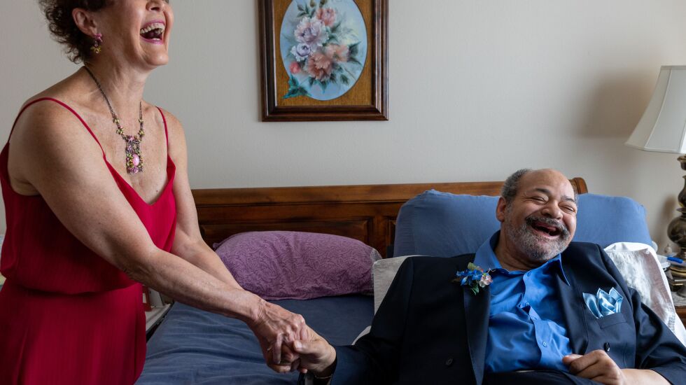 Rekindling the romance after 40 decades hasn’t been without challenges. Watts has been mostly confined to an upstairs bedroom since his arrival 14 months ago. Gustavson and his caregiver, Sandra Collins, have been working his withered limbs, and when they can, they ease Watts into a wheelchair. He left the house for the first time five weeks ago — just a trip to the backyard.