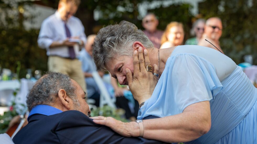 But elsewhere in the house, amid the whirl of activity, the love of his life, Jeanne Gustavson, was putting on a pale blue dress, checking her makeup and getting ready for a day she’d wanted for 43 years.