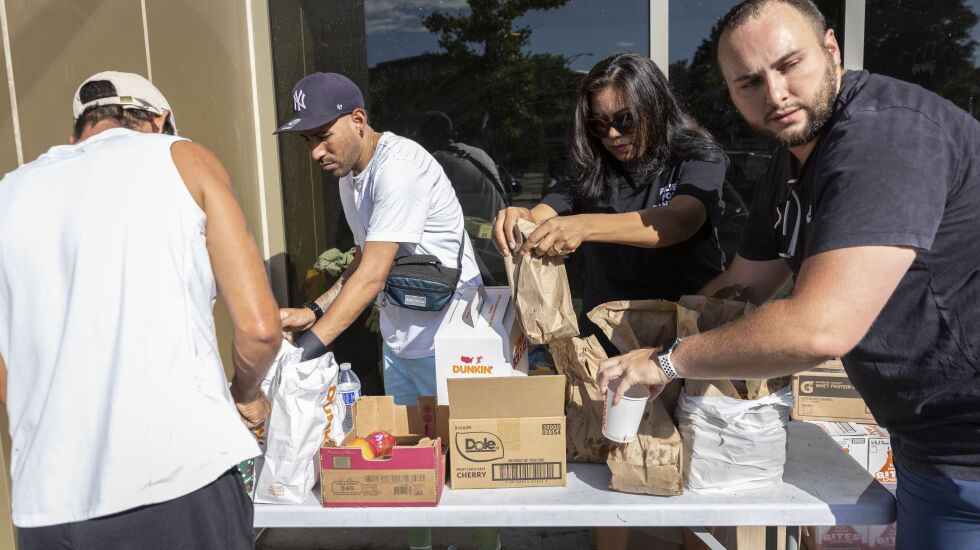 Donated food delivered on this particular morning was quickly picked over. Another delivery — sandwiches, fruit and bottled water — was nearly gone within 15 minutes.