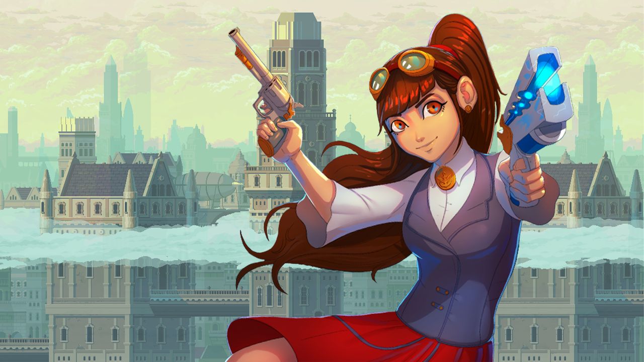 While Hiemenz makes some interesting game comparisons there, classic 2D action-shooters like Metal Slug and Contra naturally also come to mind. The protagonist Iris, an airship engineer who crashes down onto the forbidden biomes Aspida, starts from simple blaster weapons that evolve to the point of having the over-the-top firepower of an army. You could also refer to Clockwork Ambrosia as a 'Megavania', in reference to Capcom's iconic 2D action-platforming shooter Mega Man, which had a direct influence.