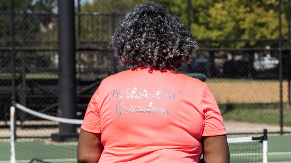 On Wednesday, Archibald joined a group at the tennis courts at Mandrake Park in Bronzeville. A bluetooth speaker one of the players brought from home played R&B jams that were punctuated by the distinctive hollow thwacking sound of pickleball.