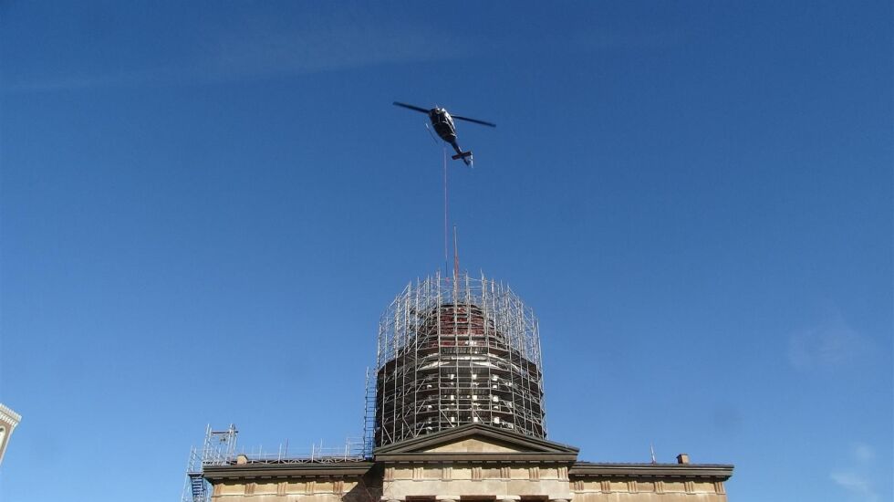 SPRINGFIELD — People walking through downtown Springfield earlier this week might have looked up to an unusual sight — a helicopter hovering over the Old State Capitol, dropping a rope and lifting away the flagpole that sat atop the bronze-colored dome.