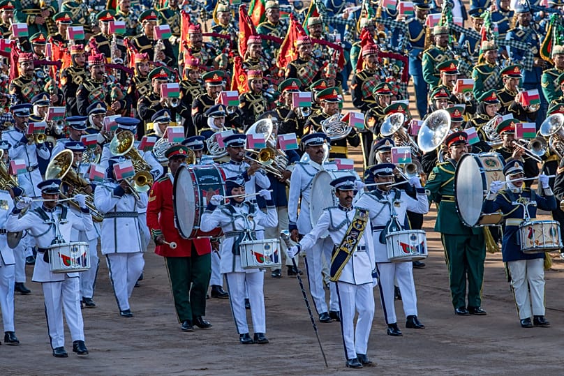 Across Oman, citizens joined parades, student performances of the national anthem, traditional camel and horse races and fireworks. A grand military parade, held once every five years, added a ceremonial highlight.