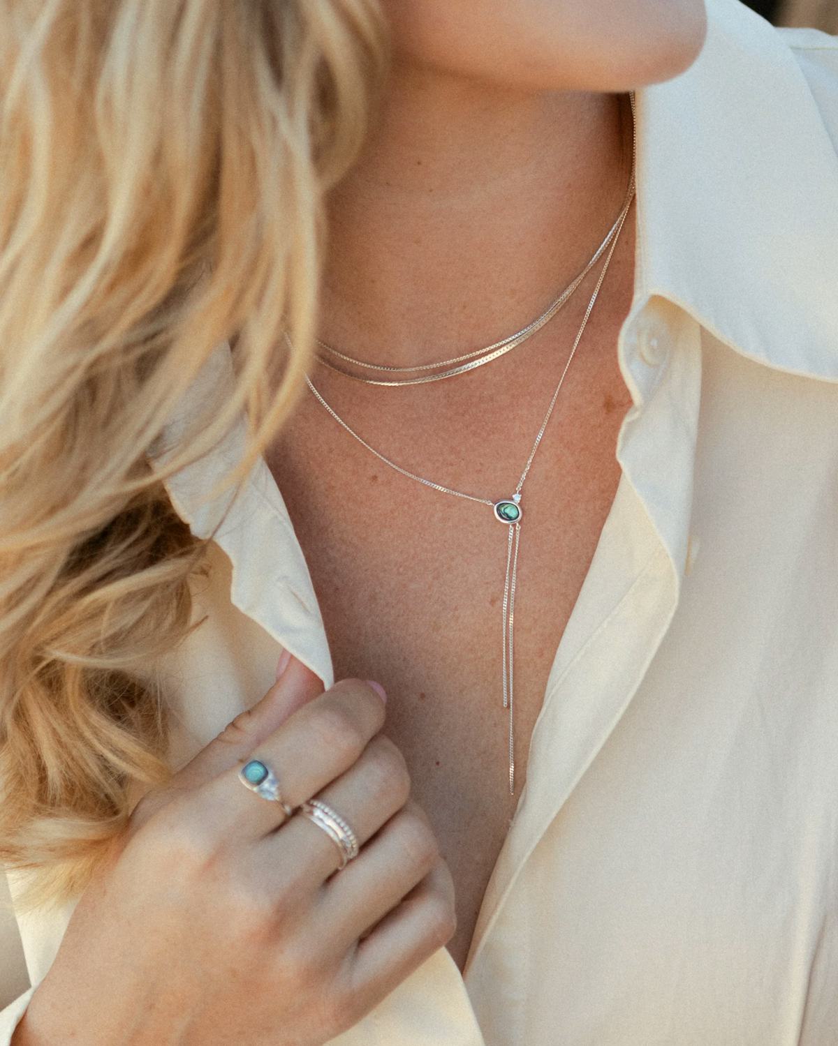 Western-inspired designs are having a major moment right now, and this bolo necklace samples the trend — but thanks to the dainty design, it never feels costume-y. The chain is crafted from 14-karat gold vermeil, and set with gleaming, organically shaped abalone. Tiny and glittering, a lab-grown Blue Spinel adds a delicate finishing touch.