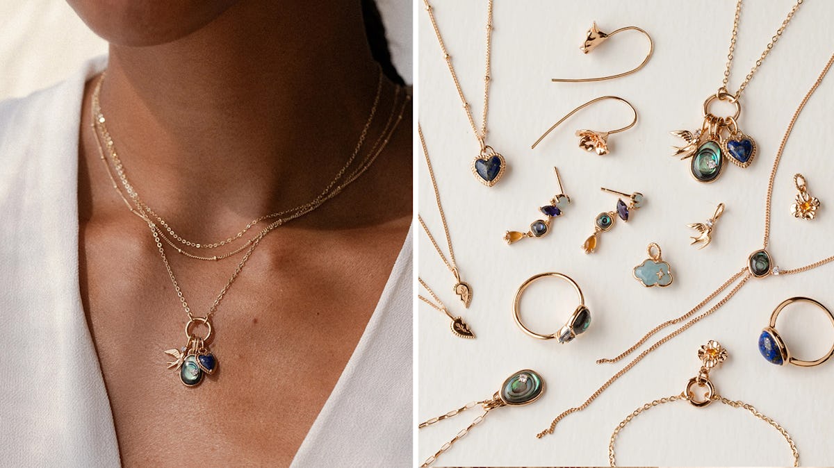 Place has always been a sort of guiding light for GLDN; the brand custom-crafts much of its pieces in its Connor, Washington studio. A collaboration with Ally & AJ makes total sense, as it combines the brand’s customary high-quality craftsmanship with inspiration from Ally & AJ’s lived experience. You’ll find influence from the artists’ home state of California, and their sense of family — they’re sisters as well as creative collaborators — along with high-quality materials and designs that bring a sense of place and connection. Like a gorgeous blue lapis lazuli ring to evoke the state’s oceans, or a friendship necklace that speaks to the duo’s strong bond. The collection features a selection of rings, bracelets, charms, and necklaces — so you can find the perfect addition to your collection.
