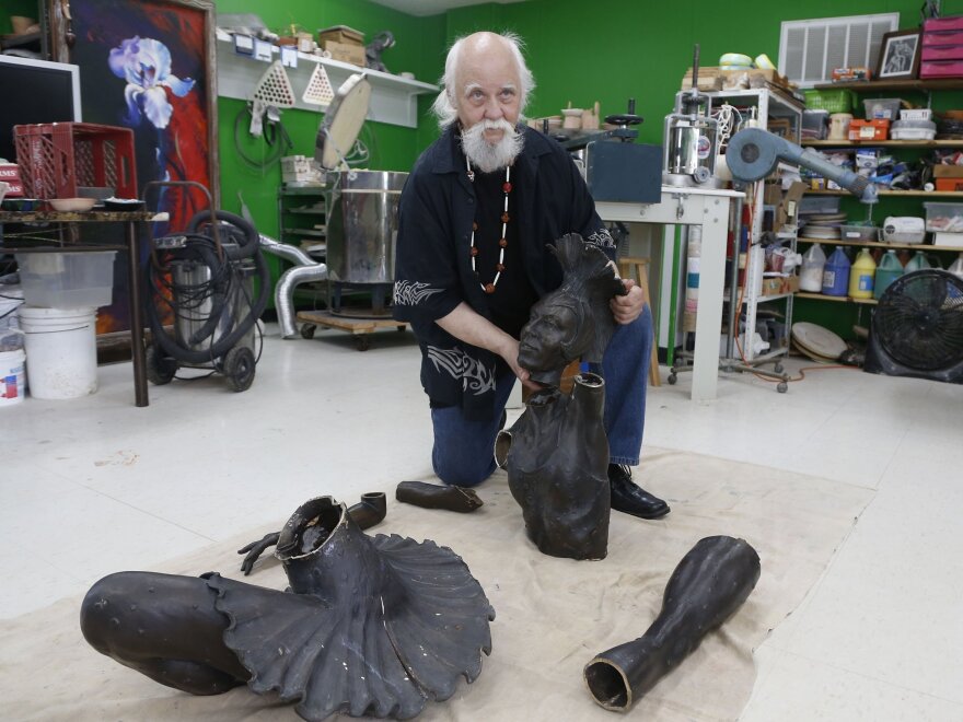 Still missing are the lower portion of each leg, both feet and one arm, but Gary Henson, one of the original sculptors, said he will be able to restore it.