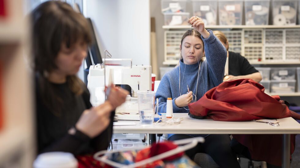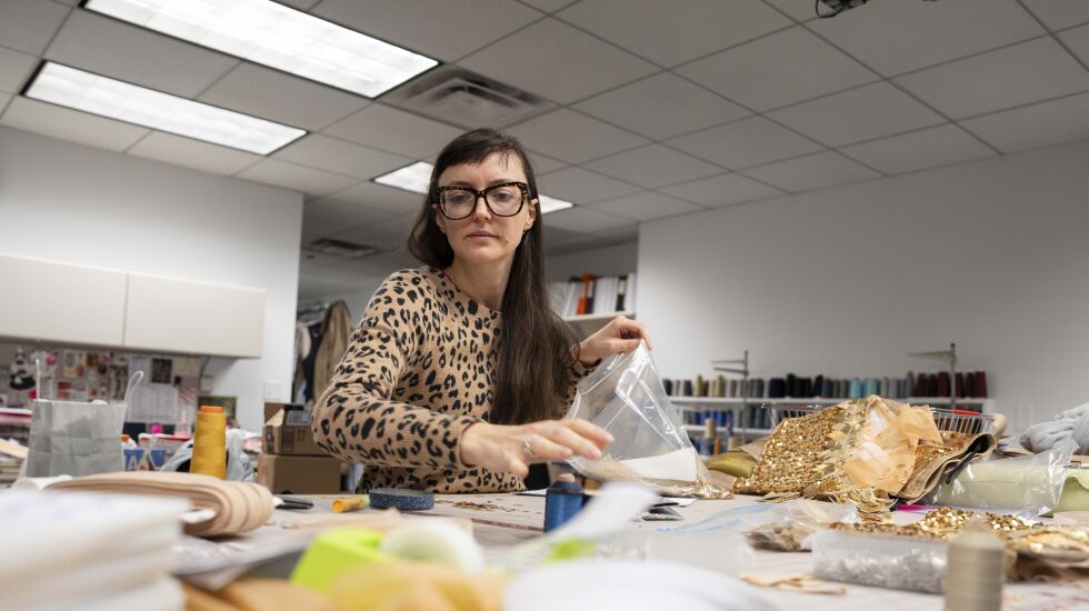 If it’s a chaotic time, it’s a controlled chaos. Three stitchers sit near a large window, working mostly in silence as they apply finishing touches to various costumes. Cotey’s team of six, including herself, has a combined 120 years of experience in the trade.