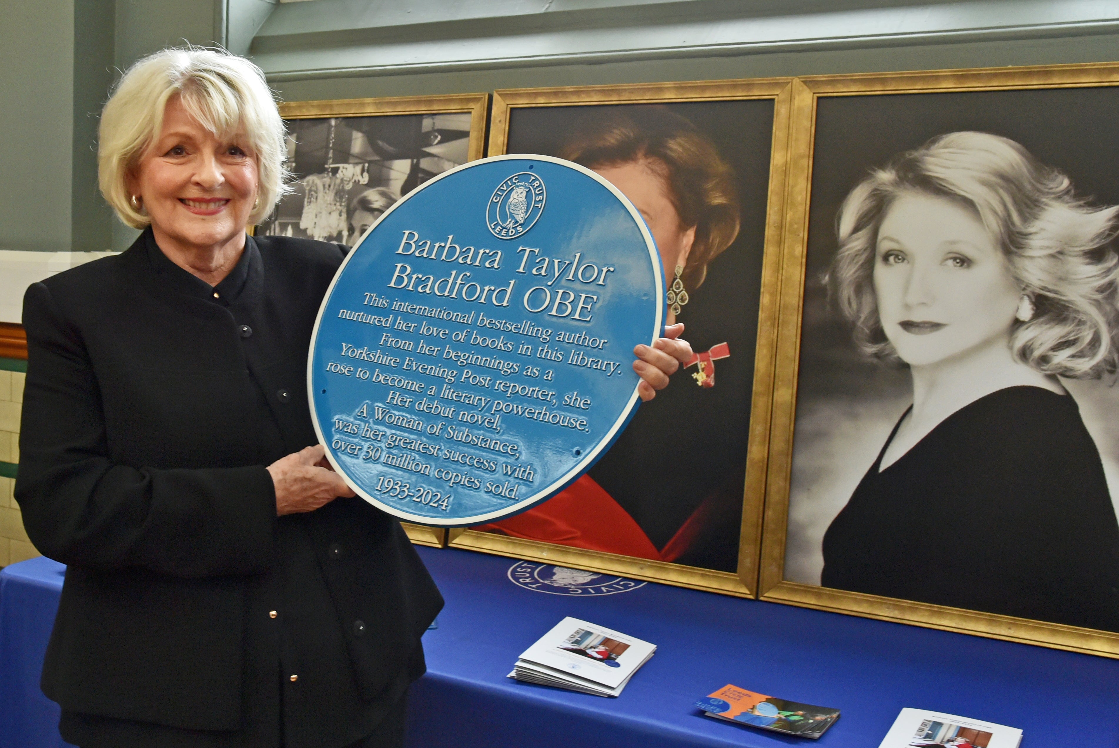 A blue plaque celebrating the life and works of bestselling author Barbara Taylor Bradford has been unveiled ahead of a TV adaptation of her 1979 novel A Woman of Substance.