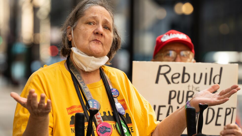 “We would like to give congratulations to Mayor-elect Brandon Johnson,” said Lonette Sims, chair of People’s Response Network and one of about a half-dozen activists who attended the news conference. “We look forward to helping his administration create a healthy and equitable Chicago.”