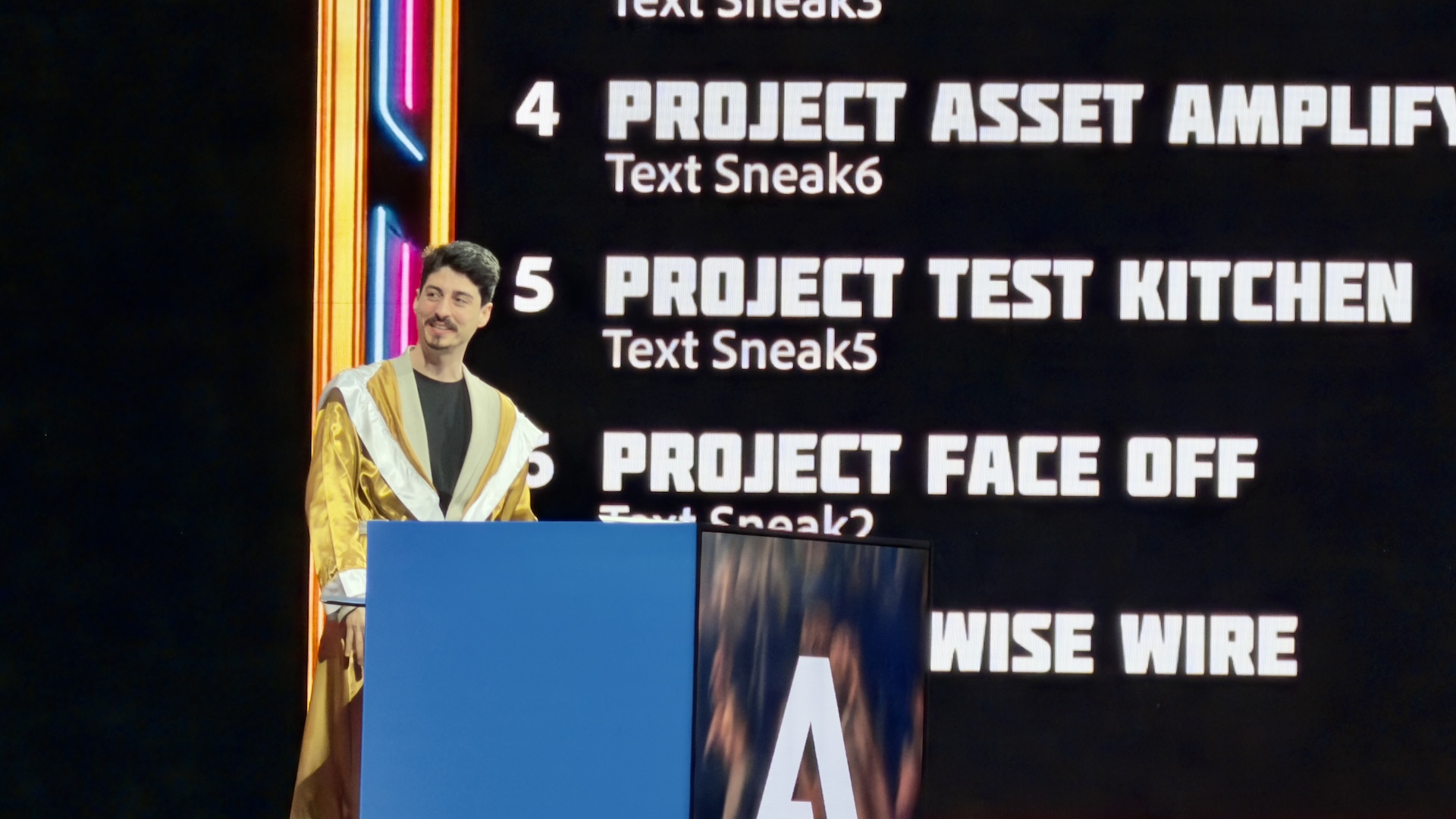 Finally, the evening culminates in Adobe's most exciting crowdpleaser – Sneaks! It's a demo session to see some of the pipeline, beta and pre-production features insiders are working on that may (or may never) make it to market.