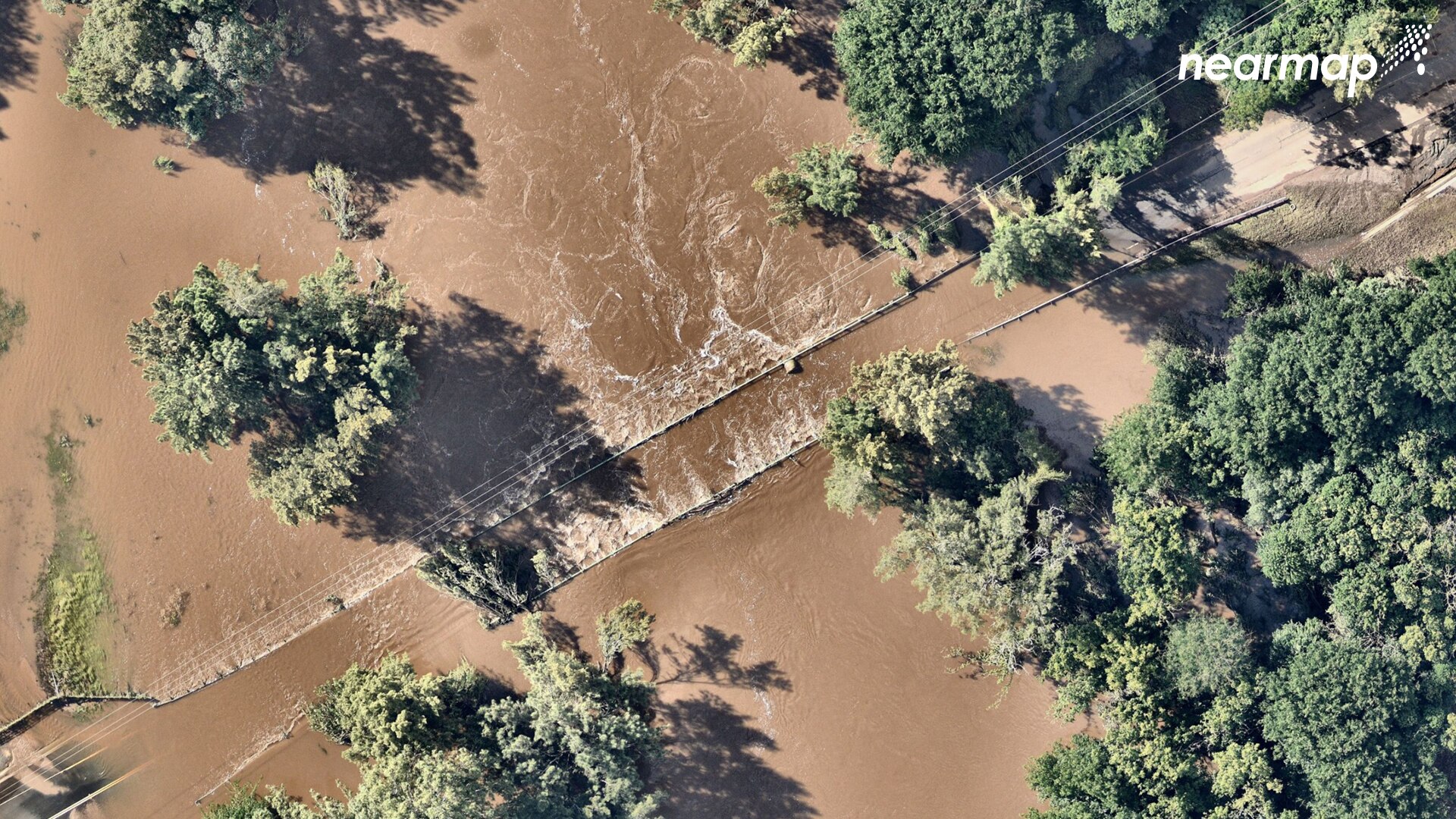 The images were captured by planes with aerial camera systems attached, showing the locations on June 15 and again on July 7, after floodwaters began to recede and the weather system moved north.