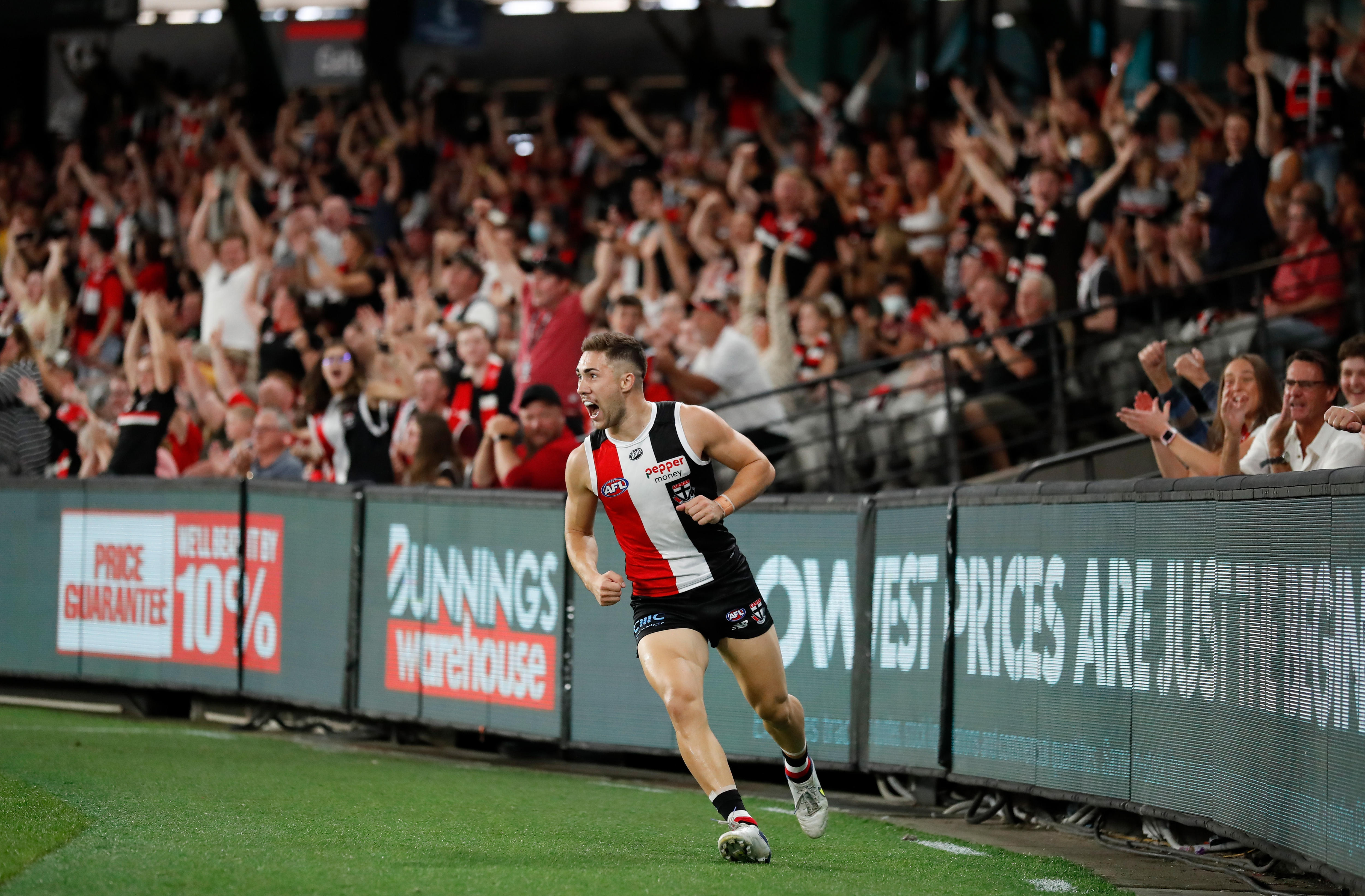 Jack Higgins kicked five goals and key forward Max King contributed three, as the Saints lost the inside-50 count 53 to 56, but were much more efficient in attack.