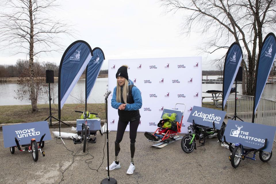 On April 1 in Chicago, about two hours away from her home in Illinois, Masters surprised two athletes with custom equipment as part of a $35,000 grant from The Hartford to Adaptive Adventures, a Colorado-based nonprofit organization with a satellite program in Chicago and a member of the Move United Network.