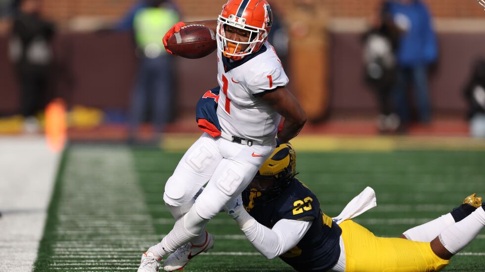 The Illini won eight games in a 2022 season of breakthroughs, but their five regular-season losses each came by eight or fewer points, otherwise known as one dang score. None of those losses was more frustrating than the first one, a 23-20 bag of missed opportunities at Indiana. And none stung more than the last one, a 19-17 slugfest at Michigan that the Illini — still with a chance to make the Big Ten championship game — led 17-10 going into the fourth quarter.