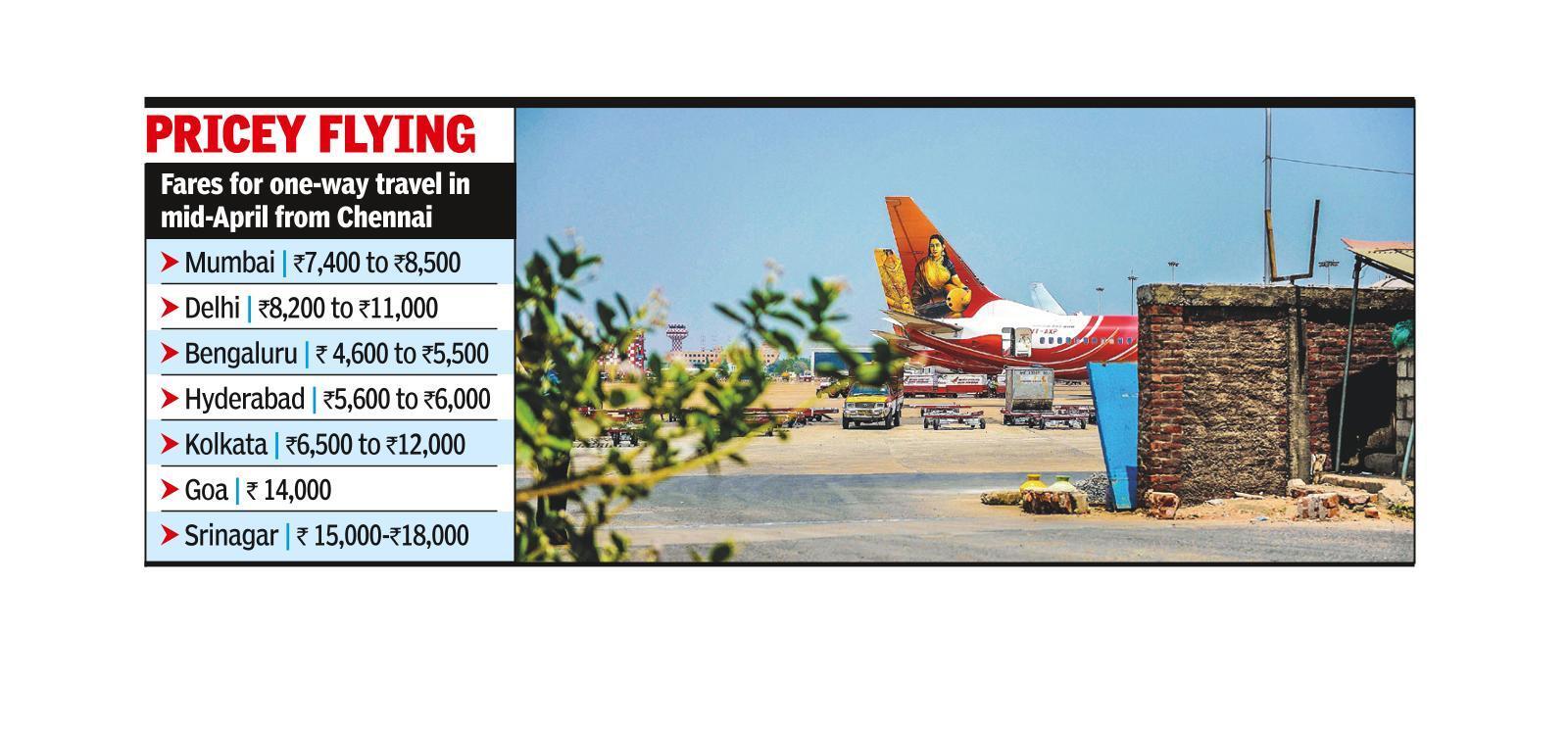CHENNAI: Air fares from Chennai to other metros, especially to Mumbai and Delhi, have shot up and are close to 10,000 for travel till the middle of April as domestic and international travel volume picks up pace for summer holidays.
