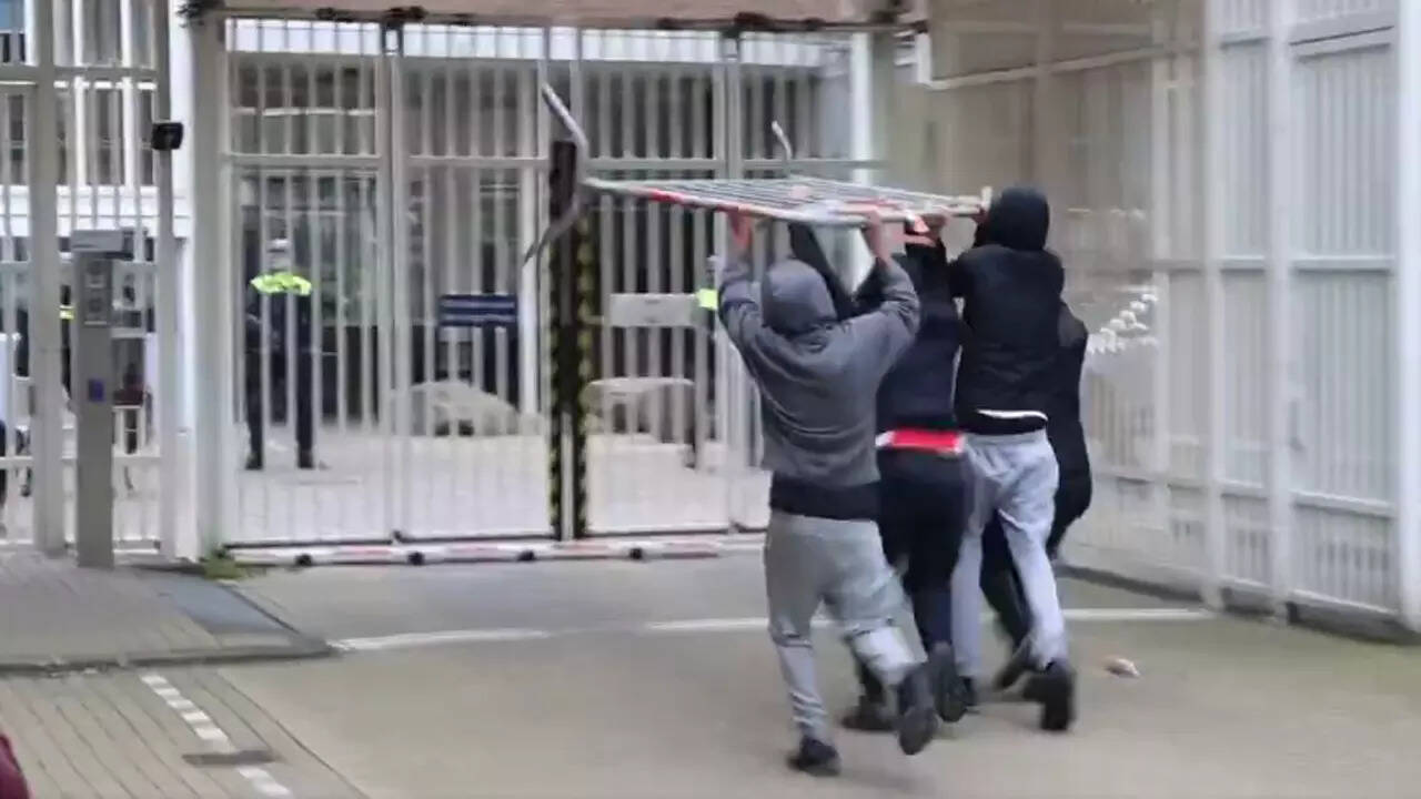 Supporters set off flares, attacked buildings and clashed with officers. Local media showed fans grabbing bicycles and barriers and heading toward the police headquarters before authorities intervened to restore order.