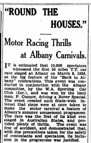 Racing at high speeds, a range of vehicles from modern to historic hurtle around the historic streets of Albany — WA's oldest town — each June.