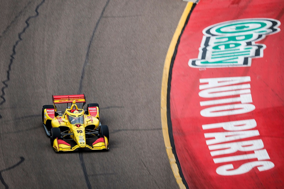 After starting 10th on the grid, Palou’s #10 Chip Ganassi Racing Honda vaulted up into the top three shortly after taking the green flag. He settled into the position behind the Team Penske duo of pole-sitter David Malukas and Josef Newgarden.