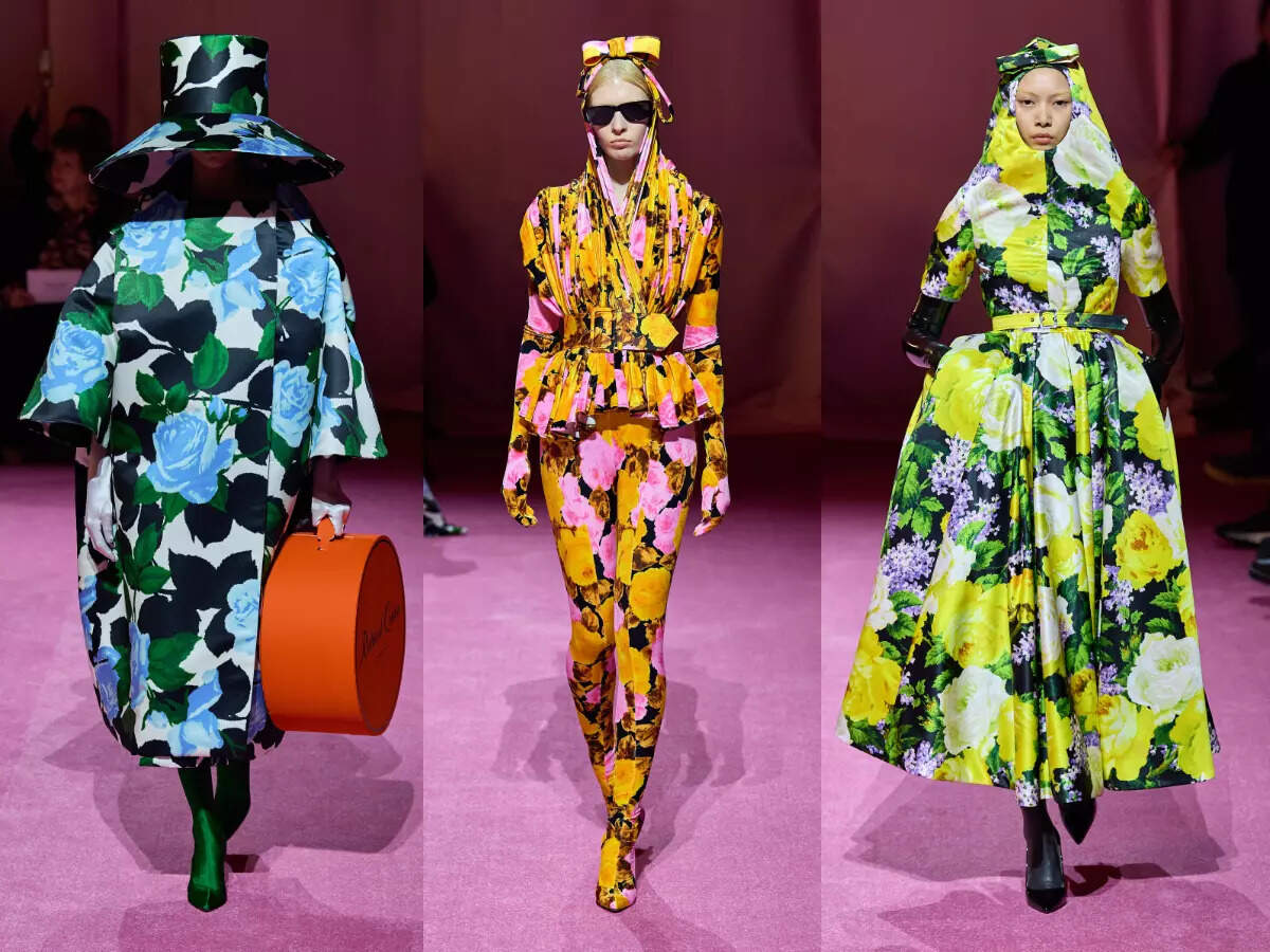 Richard Quinn\'s autumn/winter 2022 show was more or less semi-couture, with the designer going big with silhouttes. There were bright and bold colours with a lot of floral prints. His show was definitely one of the most spectacular shows this season.