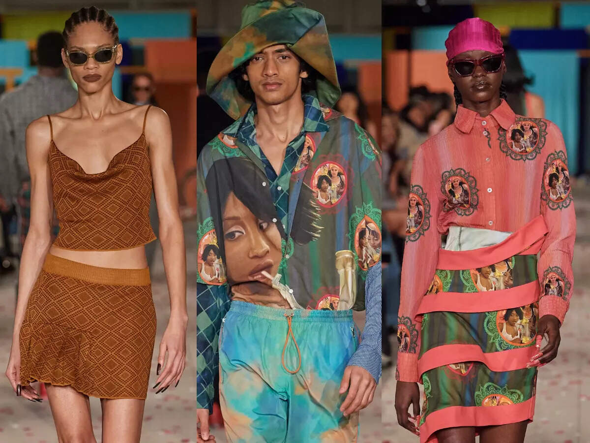 This was designer Priya Ahluwalia\'s first physical show at the London Fashion Week and she took the audience by surprise with her design aesthetics. Her collection was titled Nollywood to Bollywood. And was inspired by the designer’s childhood memories of both of these worlds and depicted authentic representations of Black and Brown people, far-removed from a European gaze.
