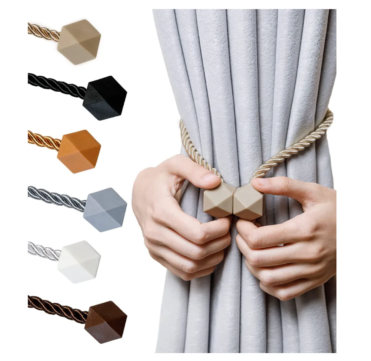 Magnetic curtain tiebacks that enhance decor